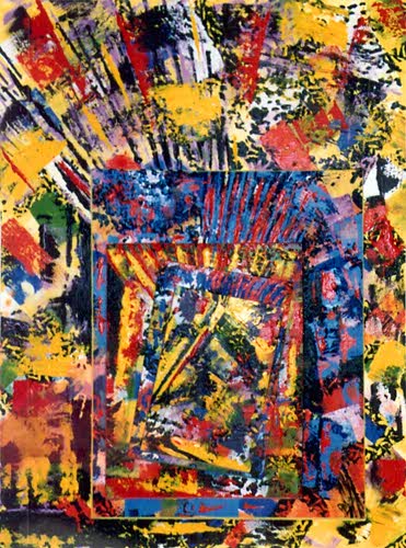 Acrylic and oil pastel on 5 layered canvas frames